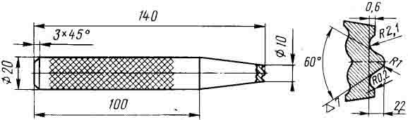 Рис. 136. Оправка для расклепывания заклепок накладки к тормозной колодке (шероховатость поверхности рабочего профиля не должна превышать 1,25 мкм)